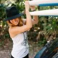 I’ve always been mesmerized by the rise and fall of the ocean, the stillness of a lake at sunset, and the rush of the river as it winds through the mountain valleys. When the tides in my own life get rough, I find myself grabbing my board and walking back toward the waters. It’s both a pilgrimage to quieter moments and a practice in learning comfort in the face of chaos. Whether floating on my back in savasana (“corpse pose”) or flowing through sun salutations that invite mindful movements, water both challenges and supports. For those of us that are not naturally good at stepping away from the noise of modern life, being in the middle of water with no phones or to-do lists nearby forces us to breathe a bit deeper.