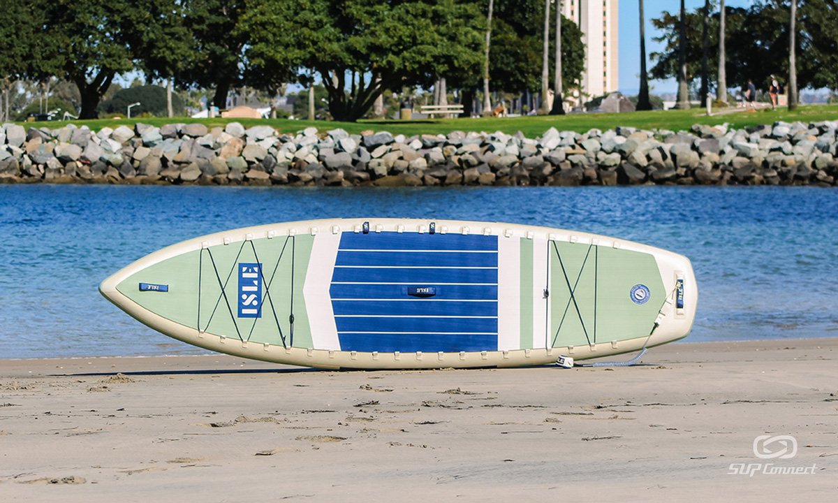 Graphically, the Switch features a very simple colorway and isn’t very flashy. Where the flash comes in is with all the features and add on’s that are included in the package. First, the board has a bungee on both the nose and tail of the board. It also has straps on the nose and tail in addition to its center handle which makes the board easy to carry if you have a second person assisting you to the water. Then, you have a paddle holder on the rail of the board which is a really nice feature, especially if you’re using it for SUP Yoga, fishing or kayaking when you want to set aside the paddle for a little bit. Another interesting feature is the use of the ‘ISLE Link’ system. Essentially, this system replaces what many other boards use: D rings, for attachment points. Instead, the ISLE Link system is a series of attached fabric loop holes on both sides of the deck near the rails that you can use as anchor systems to attach accessories to your SUP. This allows you to really customize the placement and gives you a lot more control. Nice touch for sure. By just looking at it you can see that the Switch is a really stable board. Putting the board on the water confirmed that assumption and it was very easy to hop on and go for both the SUP use and the kayak use. The board was also really lightweight and easy to carry but it didn’t seem to compromise at all in terms of durability. For everything you get with the package and the package as a whole and at its pricepoint of less than $1,000 the Switch definitely deserves an ‘A’. They did a very good job with this board.