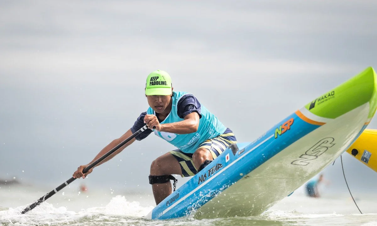 Shuri Araki (JPN) and wins his second SUP Technical Race gold medal. | Photo: ISA / Sean Evans