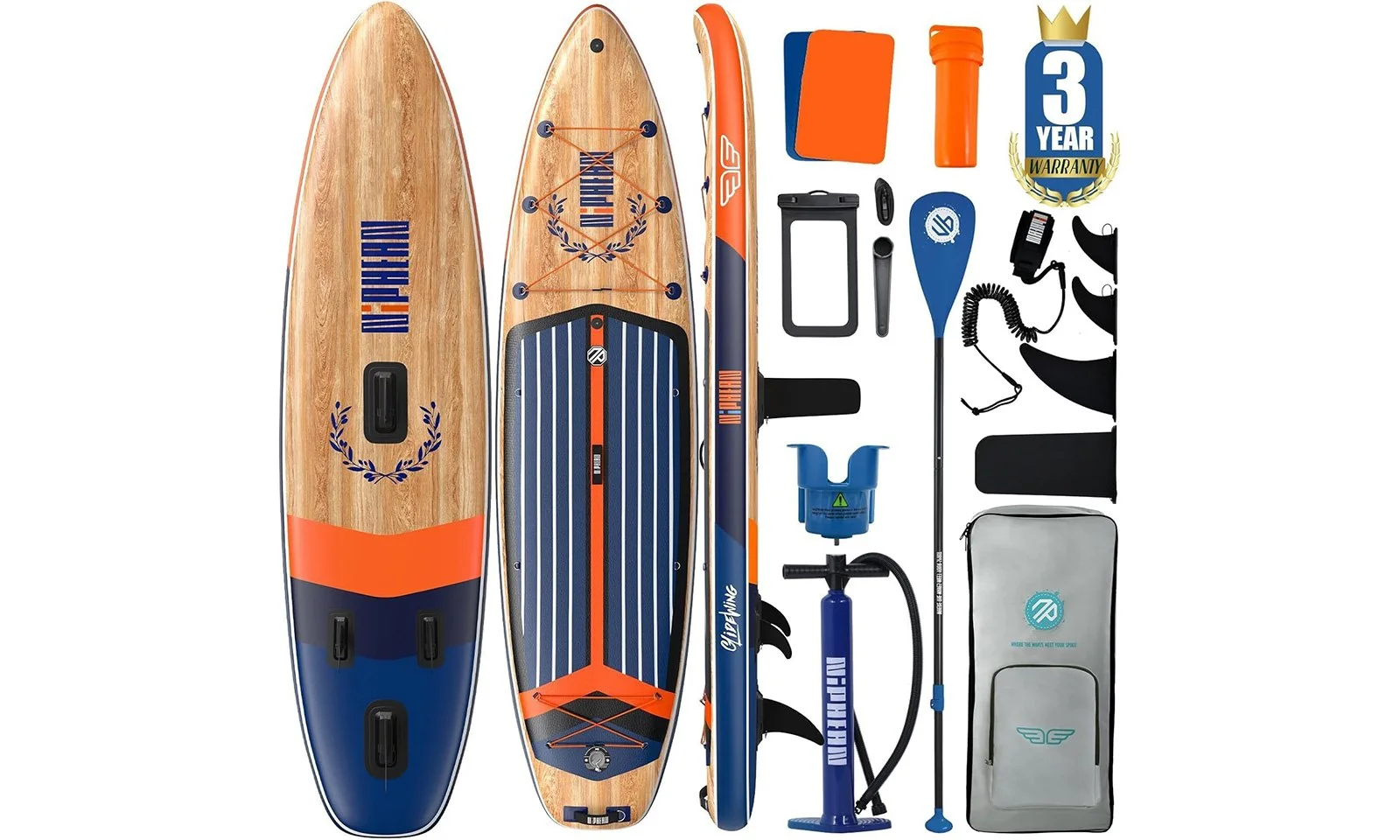 The Niphean Glide Wing 11' has a larger detachable balanced fin in the center. This inflatable sup provides enhanced stability during paddling, allowing for smooth straight-line navigation. Even blow up paddle board beginners will find it easy to use. The EVA deck of blow up paddle boards is textured with grooves for superior slip resistance and a comfortable foot grip.