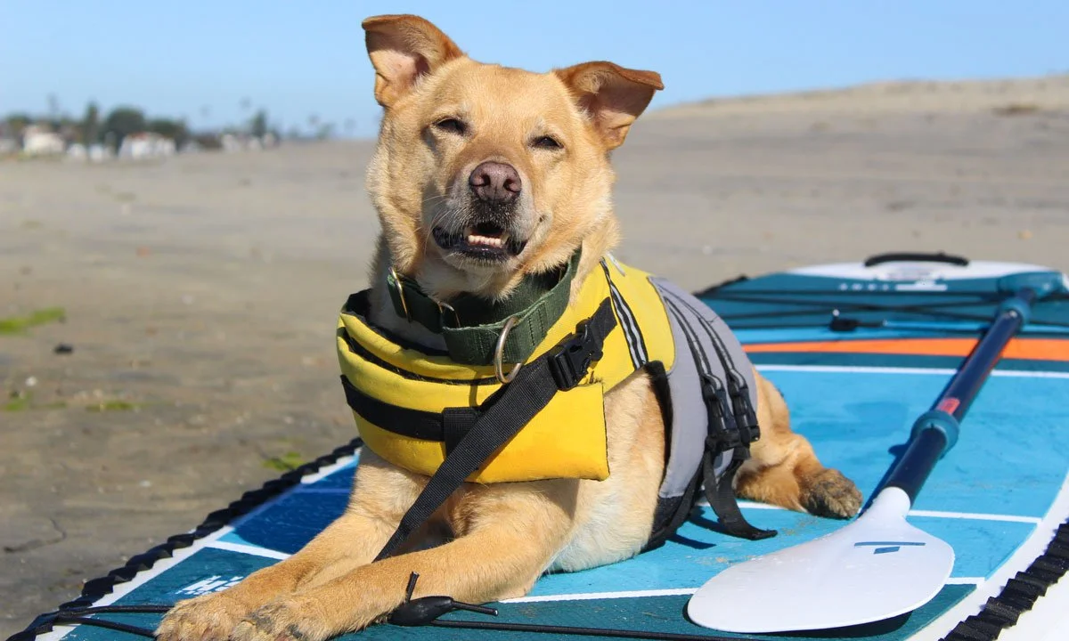 Teach your dog basic commands like- leave it, lay down, get on the board, jump, and get off. Dogs usually understand a 2-word command so try to use simple terms. If you have a pool, you can start training your pup with a dog pool float first so your dog can get the hang of the feeling of being on the water. This works great if your dog isn’t used to water yet.