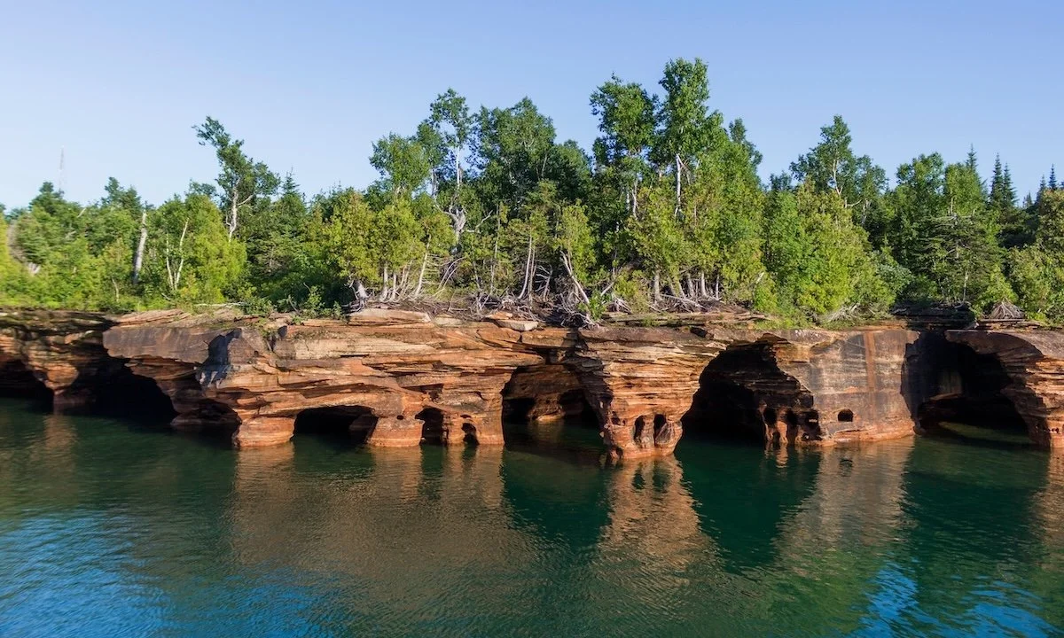 The Apostle Islands National Lakeshore in Wisconsin and Pictured Rocks National Lakeshore in Michigan showcase some of the most dramatic freshwater paddling in the world. Autumn transforms the surrounding forests into a canvas of color, cascading down sandstone cliffs and into hidden sea caves. Calm conditions in early fall often reveal crystal-clear water, making it possible to see the geology beneath your board.