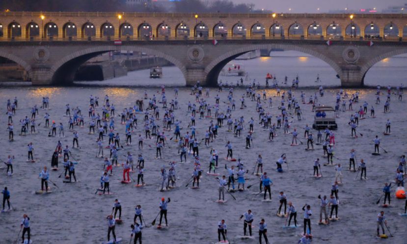 Early morning start at the 6th Annual Nautic SUP Crossing in Paris. | Photo via: Nautic SUP Crossing.com