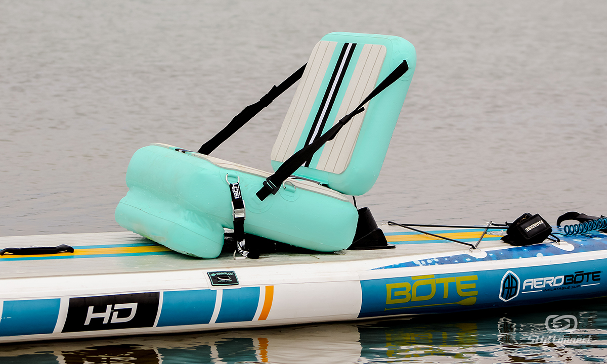 For the specific board we reviewed we had the whale shark design and at first glance, we couldn’t take our eyes off of it. The beautiful graphic detail of the whale shark design placed on the nose and tail with their logo popping through the yellow stripe on the deck and also through multiple parts on the board was so unique and cool-looking…not that we’d expect anything less from the BOTE team. They’re notorious for amazing graphics on their boards and across their product range. On the water, the board was surprisingly fast for an inflatable and very strong, able to lug around everything you need for long ventures or even a fishing trip. There are bungees at the nose and tail of the board attached to D-rings, along with additional D-rings attached around the board as well that are great for adding on extra gear. There are also straps placed at the nose, deck, and tail of the board making it all the more versatile for carrying, anchoring and other uses you might need. This overall package is packed with great accessories such as 3-piece adjustable SUP paddle, a 10″ removable center fin, a repair kit, a hand pump, and a travel bag. The bag was nice (no wheels unfortunately) but the material is like a waterproof material which was pretty cool and obviously handy. One thing that also stood out was that the package didn’t come with a leash, which is concerning for safety reasons, but it did come with multiple surprising accessories, like an inflatable kayak seat, removable Aero paddle sheath, and a pair of slide-in Aero rac receivers. All amazing add on’s no doubt, but a leash is definitely something that should be an included accessory in the package. Luckily, getting a leash separately is not too big of a hassle or expense so make sure you get one if you don’t already have one. Carrying the board down to the water was easy and it didn’t feel too heavy at all. When getting onto the board it was very stable and didn’t feel like an inflatable when paddling it in the water. It is light on the water and had a fast glide. This board was designed to be a ‘do everything’ board and it truly can do just that. It's really an all-around beautiful board. And when testing out the kayak version of this hybrid board, it stood out how comfortable the inflatable seat was when sitting on it. It was higher than the usual seats we tested out, which might affect stability (lower center of gravity = more stability) but regardless, it was a good time. Overall, this board was exciting, fun, came with a ton of great features, has great quality and for that we’re giving it an A-grade.