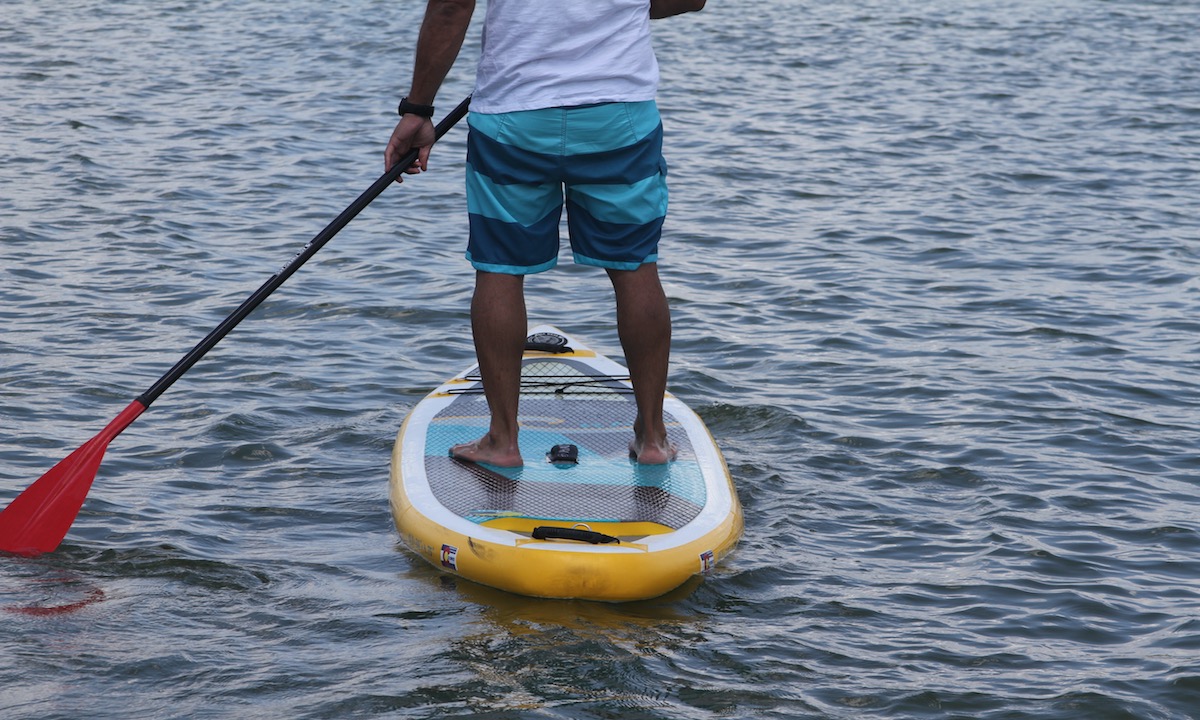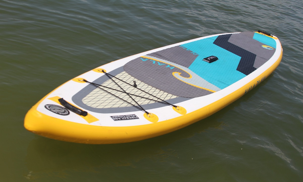 On first impressions, the graphics and color are good, the shape design is rather thoughtful and the construction strikes as rugged. The Playa has some nice looks, coming with an interesting mix of colors and graphics, intended to be lively and eye-catching. The shape design is unique for boards in these categories using a combo of fiberglass and drop stitch technology and suits both touring and surfing. The construction does appear strong, as something that can handle heavy use. This paddle board is somewhat difficult to carry at its weight of 29.1 lbs but is definitely manageable and the glide is slow. In addition to the center strap in the center of the board, the board also has handles on the nose and tail of the board. After putting it all together, the Playa is a stable board that most paddlers should be able to stand on and paddle away.